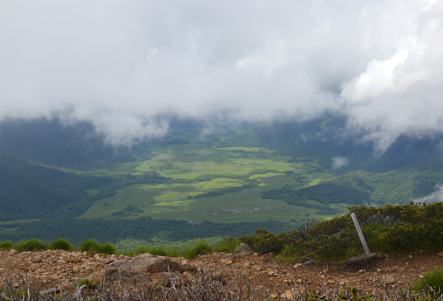 15年前の9月中旬、尾瀬を散策したことがあります。夜行バスで新宿を出発しましたが、台風が到来していることもあり、乗客は予定の三分の二ほど。空席ができて荷物を置く場所が増えましたが…。早朝に鳩待峠に着き、至仏山(2228m)に向けて出発。登山口には「熊に注意」と記され、クマ除けの鈴を持参していなかっただけに、頂上に向かって歩いていくのも何となく不安な感じでした。台風の影響もあり、横殴りの雨、視界不良で歩く人も少なく、頂上までに出会った人は一人だけ。熊だって台風の影響で避難していたのでしょう。本来なら頂上でノンビリ過ごしたかったのですが、悪天候の中、いろいろなものが吹き飛ばされそうでした。趣味とは言え、登ってきたことに後悔するほどでした。頂上ではだんだん寒くなり、尾瀬ケ原の方へ下山することにしました。不思議なことに、下山するについて視界が開け、尾瀬にある山ノ鼻に着くとすっかり晴れ渡りました。相変わらず「熊に注意」の看板が目に付き、熊を気にしての歩行でした。尾瀬ケ原の木道を歩いていると、両脇には紅葉が始まり、野草の鮮やかな色合い。目前には日本百名山の一つ燧ケ岳(ひうちがだけ)がどっしりとそびえています。午前中の嵐もどこ吹く風で、心和む風景に楽しい散策となりました。