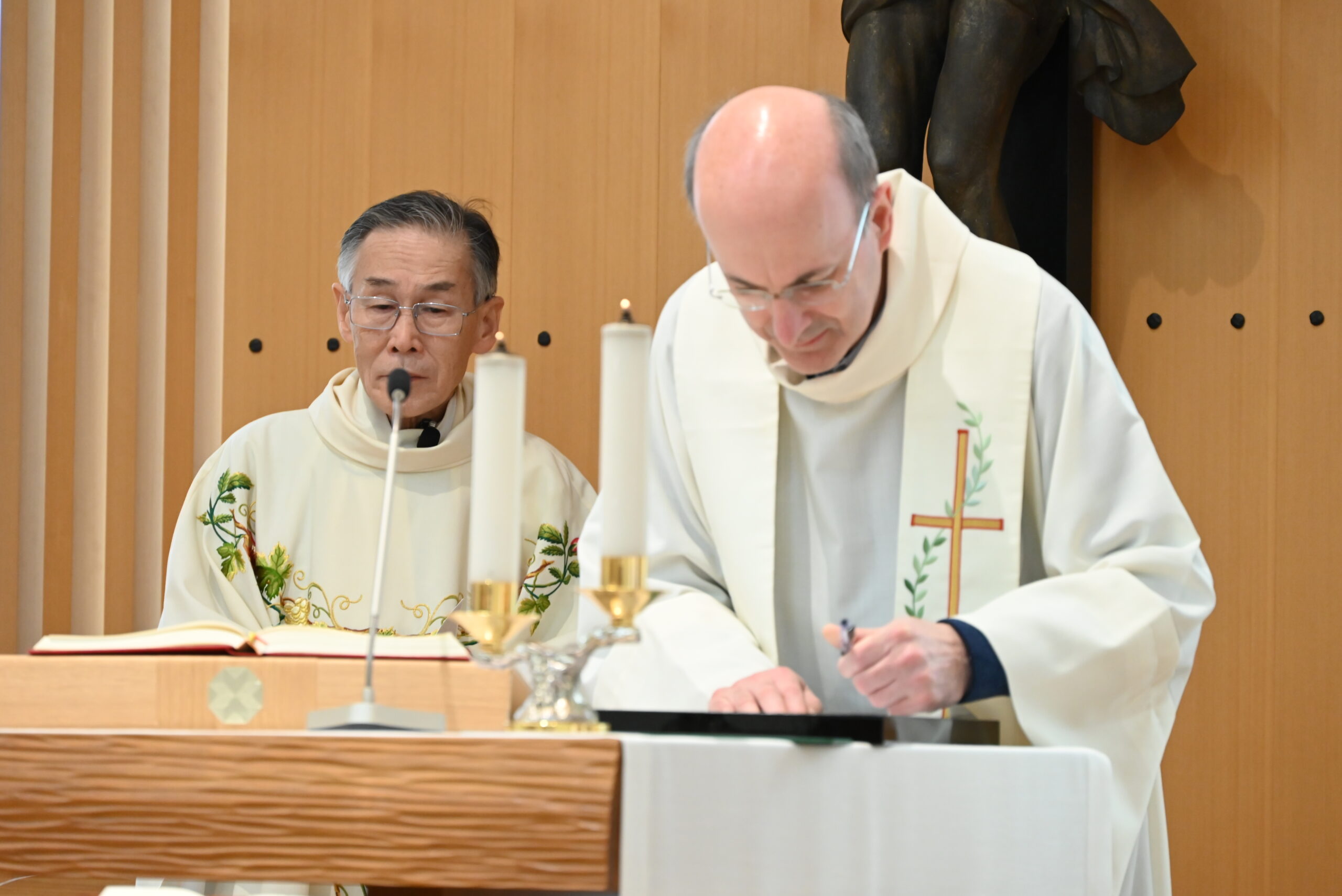 祭儀は、管区長・鈴木信一神父が司式し、総長のドメニコ・ソリマン神父、数名のパウロ会司祭も共同司式しました。ミサにはパウロ会司祭のほか、友人、パウロ家族のメンバー、信徒らが参加しました。