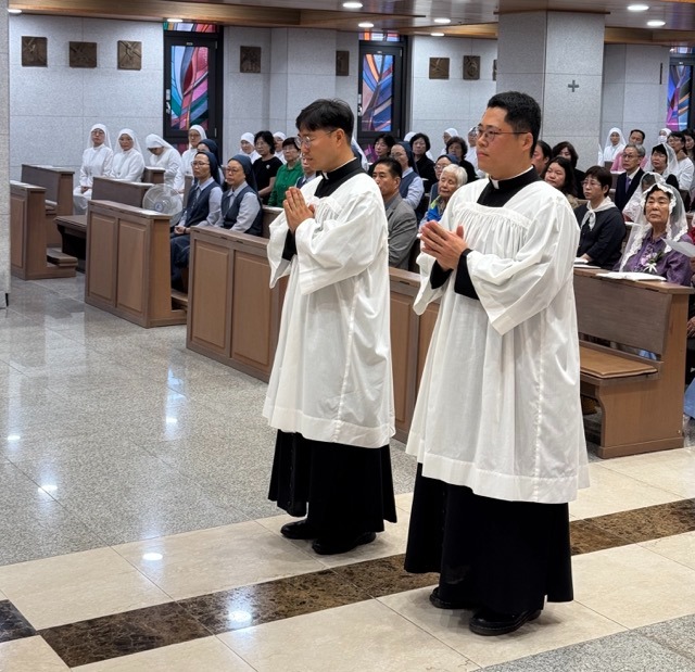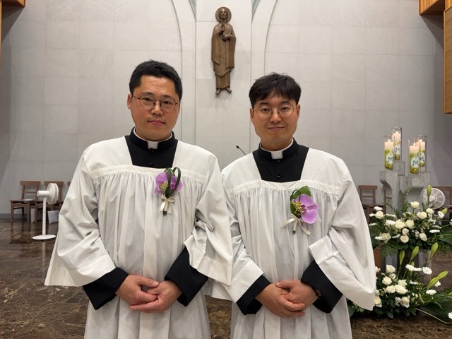 2025年9月27日、ソウルの師イエズス修道女会の聖堂において、ファンボ・ヒョプ・アンセルモ助祭とチ・ジングン・フランチェスコ修道士の終生誓願式が執り行われました。