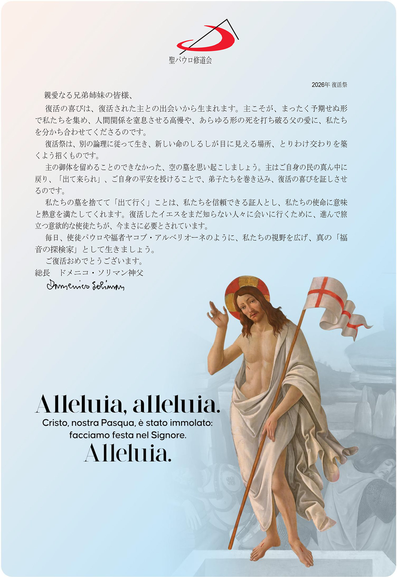 復活の喜びは、復活された主との出会いから生まれます 〜総長からの復活メッセージ〜